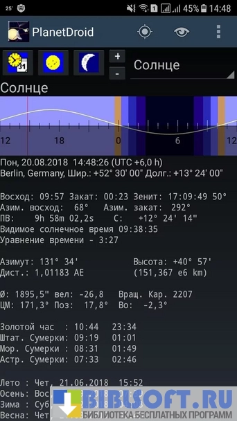 - наличие информации о разных типах и видах сумерек (Гражданские и Астрономические);