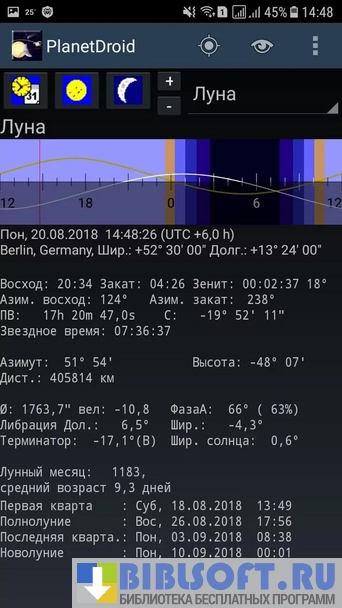 - присутствие данных о части Луны, которую видно невооружённым глазом на данный момент;