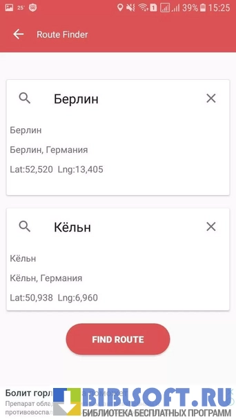 - автоматическое определение местоположения пользователя;
