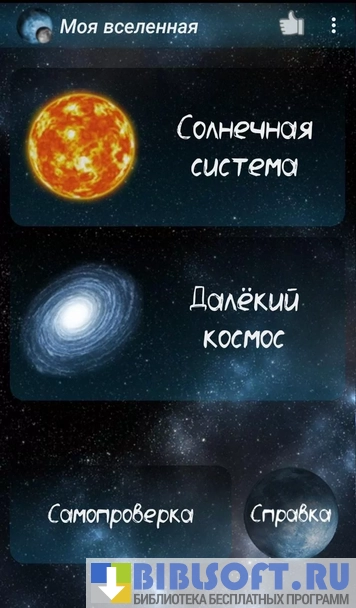 Моя Вселенная: энциклопедия и тесты – симбиоз интерактивной энциклопедии и агрегатора тестов о Вселенной для Android. Содержит в себе иллюстрированные научные статьи о Космосе и небесных телах, написанные понятным для обычных людей языком.