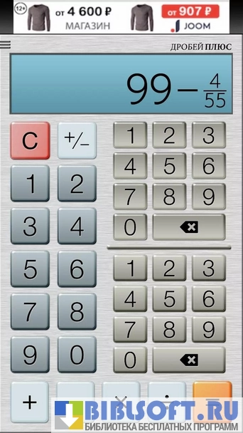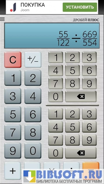 Бесплатный Калькулятор дробей – вычислитель обычных дробей для Android-устройств. Может рассчитывать итоговые и промежуточные значения Обычных дробей любой сложности. Имеет специальный интерфейс для задания числителя и знаменателя Обычной дроби.
