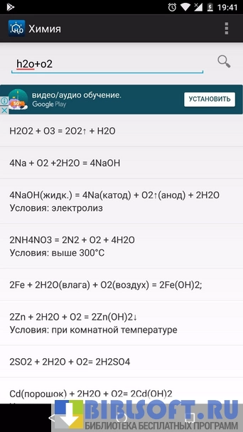 - удобный поиск необходимой формулы для химической реакции. Найденная реакция будет отображена не только в обычном, но и в ионном виде;