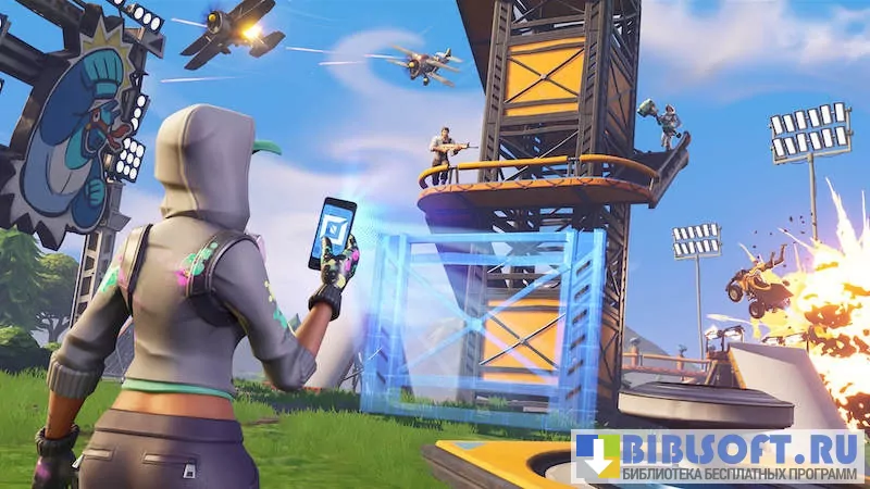 Fortnite - мультиплеерная игра в жанре королевской битвы для Android устройств. Участвуйте в одиночных или командных состязаниях с возможностью строительства укреплений и зданий. Находите многочисленные огнестрельные оружия, ловушки и бустеры, спрятанные на каждом участке огромной игровой локации. Прячьтесь от противников в траве или используйте возвышенности для получения стратегического преимущества. Убегайте от бушующей бури, которая постепенно заполняет всё игровое пространство и принуждает игроков двигаться в одном направлении.