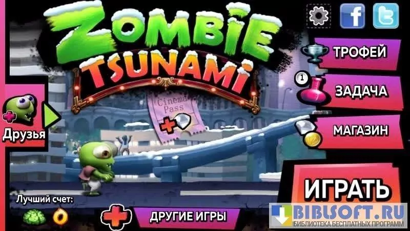 Zombie Tsunami — веселая аркада для Android, гонка зомби за прохожими, попадающимися на их пути. Управляется игра одним кликом в любом месте экрана. В зависимости от того, насколько долго задерживается палец на тачскрине, персонажи могут прыгать, перескакивать через пропасти, бежать с разными скоростями, кувыркаться в воздухе. Начиная игру с одним зеленым героем, уже вскоре пользователь обнаруживает, что ему подчиняется целая толпа подробных существ. Они появляются после того, как зомби, уже начавшие свой забег по городу, съедают очередного зазевавшегося прохожего.