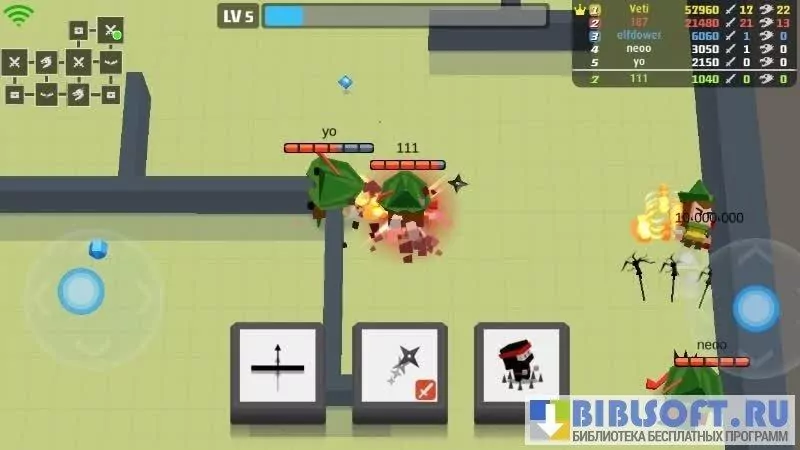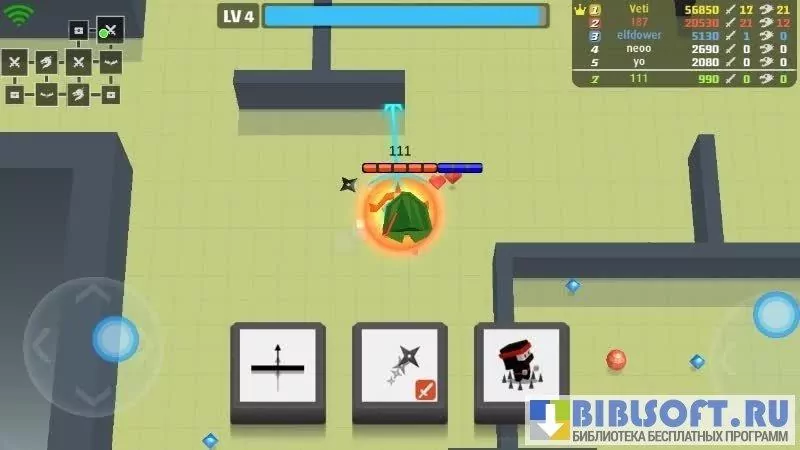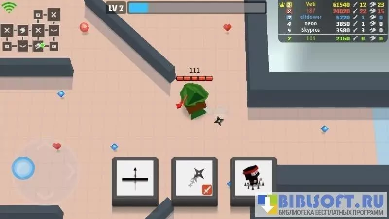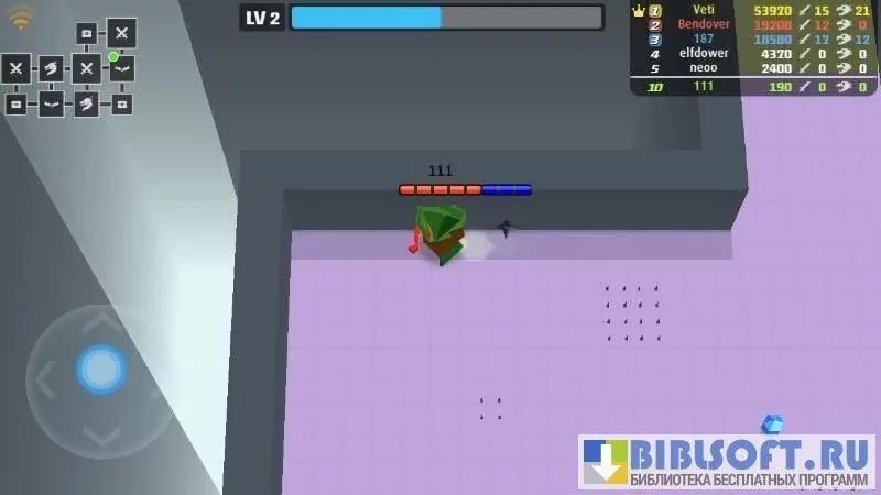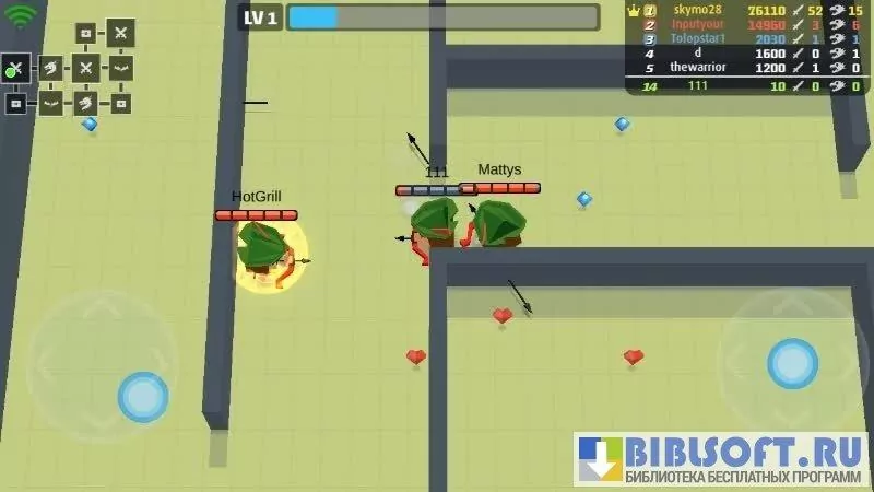 Arrow.io – игра-перестрелка для Android между героями на средневековом оружии. Игра выполнена в минималистическом стиле. Баталии разворачиваются на карте в виде лабиринта. Вид на персонажа от третьего лица сверху. Передвигается персонаж вслед за вашими движениями по экрану. Двигаясь по лабиринту, собирайте кристаллы для повышения уровня и сердца для восстановления жизни. С повышением уровня персонажу становятся доступны новые способности, с помощью которых вы можете воевать с другими игроками. Цель в игре повышать уровень и выживать, уничтожая противников. В награду за участие в боях и убийство врагов персонаж получает баллы, которые дают доступ к другим боевым аренам.