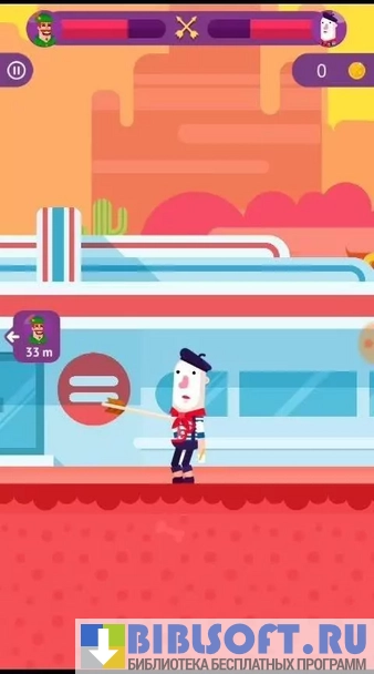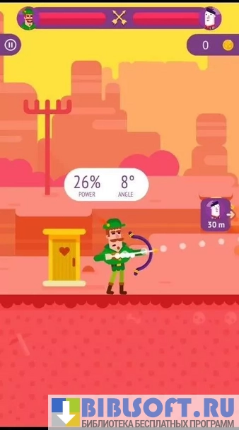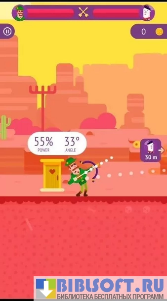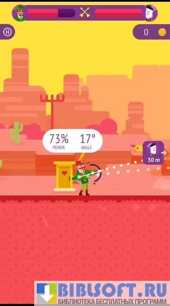 Bowmasters – увлекательная аркадная игра-стрелялка для Android, выполненная в двумерной графике. Действие происходит в тире, где игроки могут сражаться в нескольких режимах: “дуэль”, “охота на птиц”, “стрельба по яблокам”. В двух последних режимах сначала стреляет один игрок, потом другой, и в итоге побеждает тот, кто первый сведет линию жизни противника к нулю.