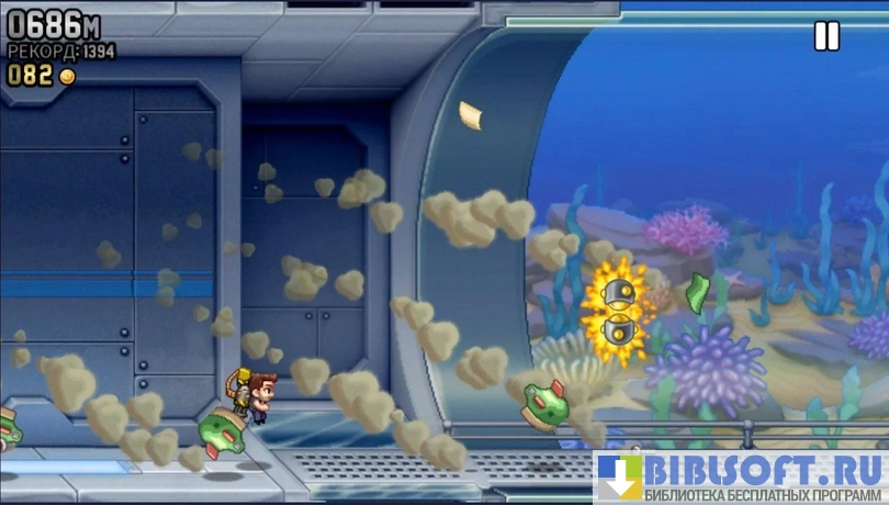 Jetpack Joyride - аркадный раннер для Android, в котором командой ученых разрабатываются передовые технологии. В распоряжении главного героя попадает одна из них - реактивный ранец. Изначально в него встроен только пулемет, но впоследствии будут открываться новые механизмы, которые покупаются за внутриигровую валюту. С их помощью можно прокачать ранец по полной. Но это не единственное средство передвижения - по локациям разбросаны бонусы, среди которых большой механический дракон, мотоцикл и даже самолет. Управление ранцем настолько простое, насколько это вообще возможно - когда удерживаешь палец на экране главный герой поднимается вверх, а стоит опустить его, как он начинает снижаться.