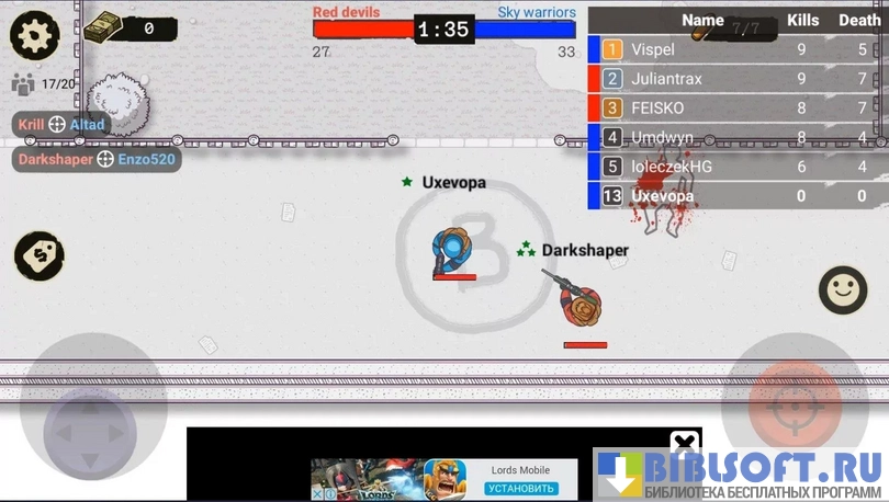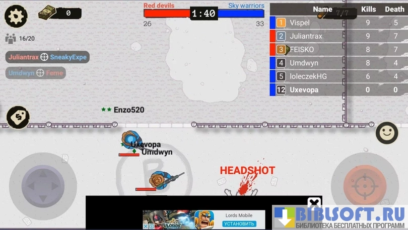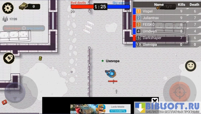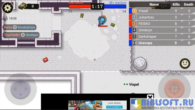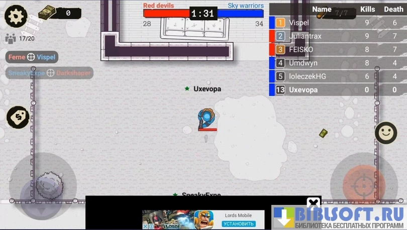 Sketch War io – многопользовательский шутер для Android с классовой системой развития персонажей и видом «сверху». Игрушка повествует об извечном противостоянии небесного клана «Sky Warriors» с бандой террористов «Red Devils».