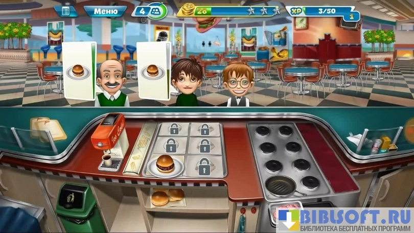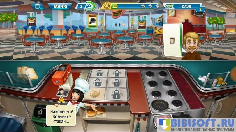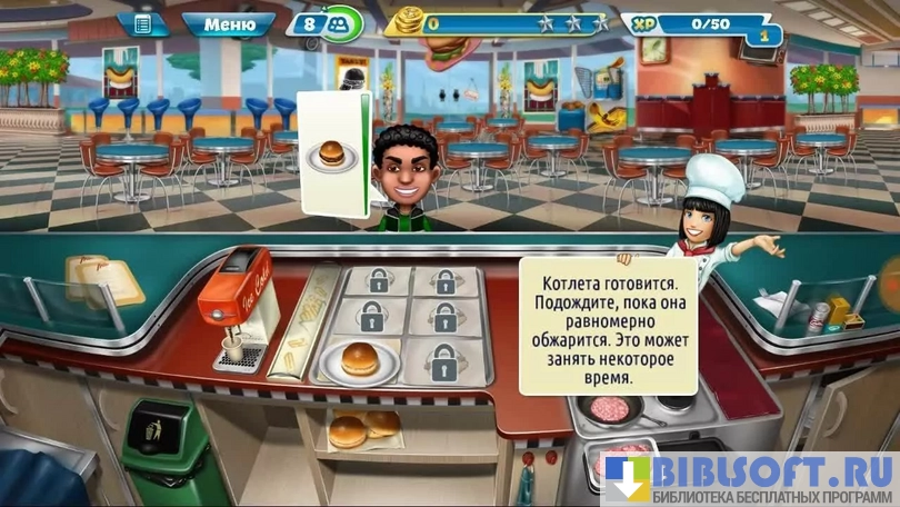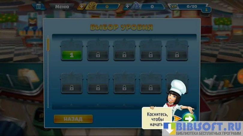 Подсказывать новичкам будет опытный поваренок, периодически предлагающий заплатить игровую валюту и перейти на новый уровень игры. Вы можете игнорировать все предложения и просто начать играть.
