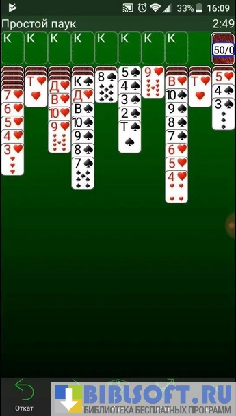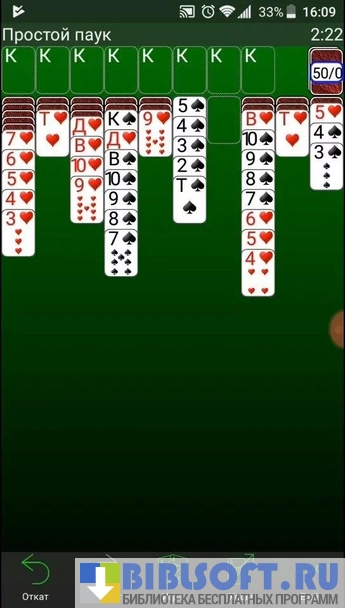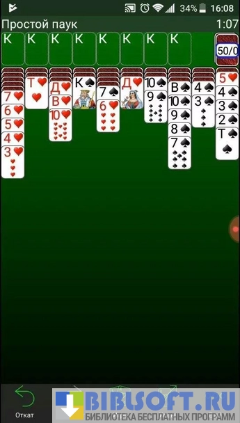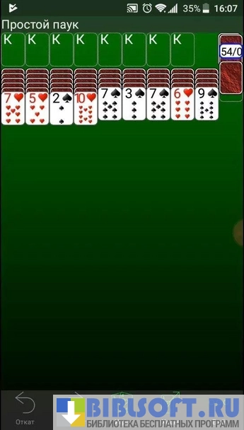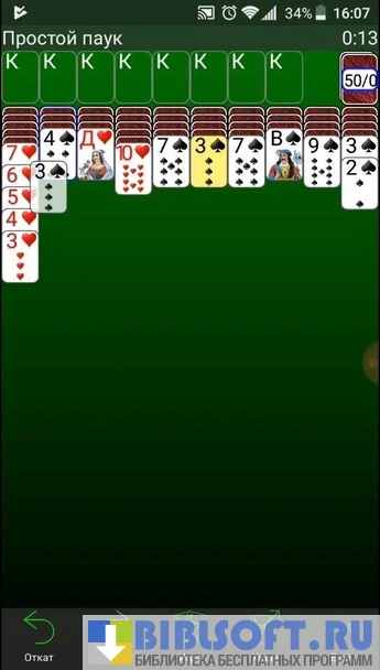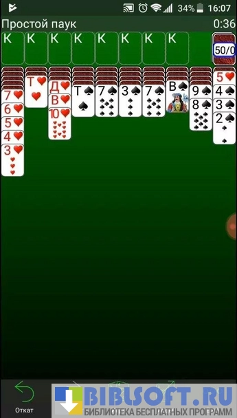 Приложение содержит в себе целых двенадцать пасьянсов. В коллекцию вошли следующие игры: Косынка, Гольф, Простой Паук, Свободная ячейка, Алжирский пасьянс, Кэнфилд, Три пика, Пирамида, Скорпион. Приложение точно не надоест, можно постоянно менять виды пасьянсов. Каждый пасьянс сопровождается грамотным описанием и графической демонстрацией. Начните с самого простого уровня и постепенно совершенствуйте свои навыки. Иногда нужно проявить немного терпения и продумать все свои последующие действия.