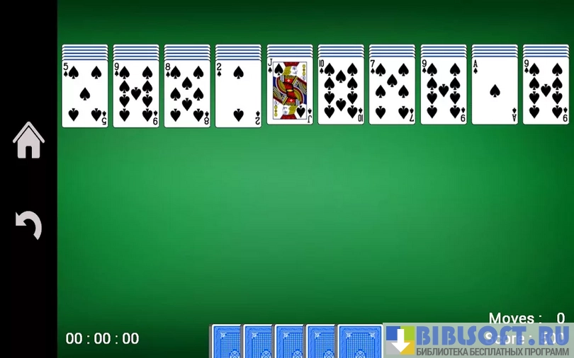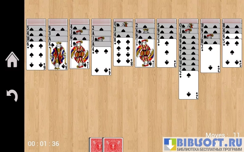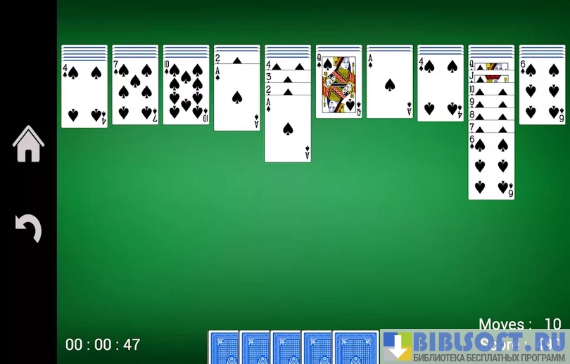 Как только закрытая карта становится верхней в стопке, она открывается. Если пустых столбцов нет, игрок может взять одну из отложенных кучек по 10 карт и распределить эти карты по столбцам.