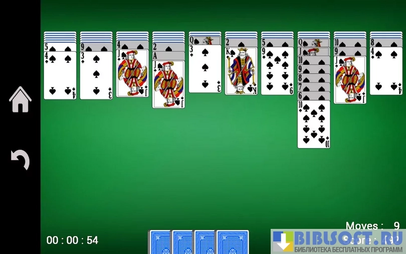 Пользователь может выбрать один из 4 уровней сложности. На первом уровне каждая карта повторяется 8 раз и все они пиковой масти. На втором игрок имеет дело с пиками и червами. Третий уровень сложности предполагает использование 2 колод с 4 мастями. На 4 уровне необходима хорошая стратегия, так как предусмотрены сложные комбинации.