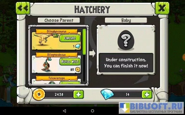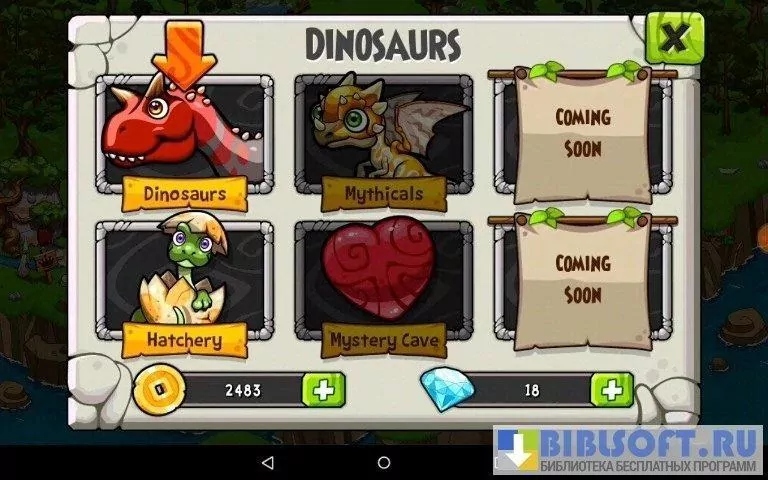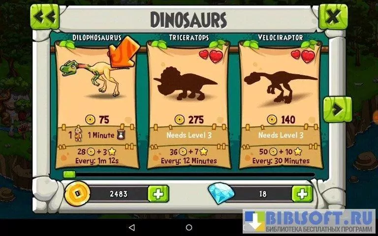 - можно превратить убежище динозавров в благоустроенное жилище. Нужно покупать декорации и строить различные сооружения, чтобы играть с динозаврами как с домашними животными. Собирайте доход от магазинов, которые вы построили, чтобы заработать еще больше монет;