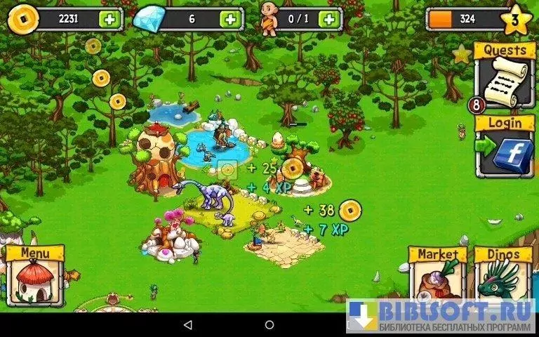 - через Facebook можно пригласить в игру друзей. Посмотрите другие жилища динозавров и оцените их.