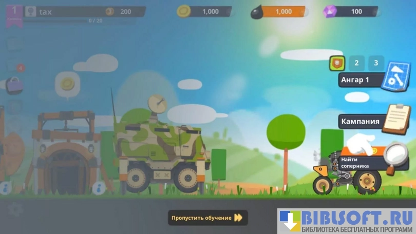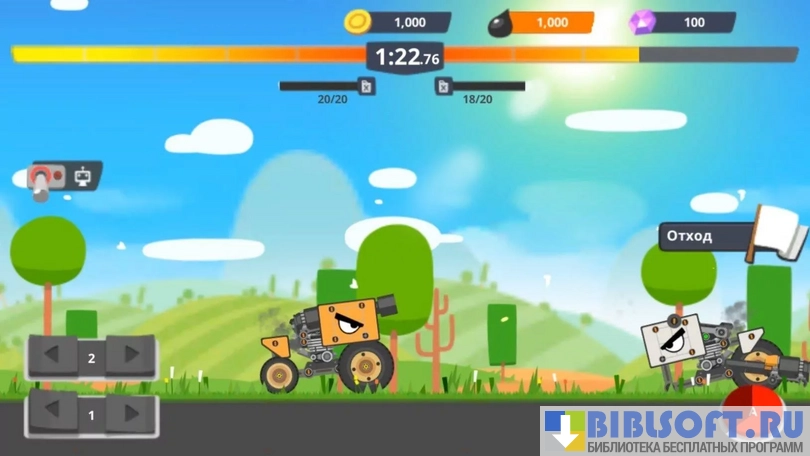 Super Tank Rumble – оригинальная игра для Android, являющийся смесью настоящего танкового экшена и мощного конструктора. Использование множества уникальных деталей позволит игроку завершить процесс сборки собственного танка и принять участие в сражении. Чтобы пополнить собственный игровой счет первой суммой, следует уже в первом тренировочном бою уничтожить вражескую технику. Заработанные пользователем средства станут базой для последующей модернизации машины.