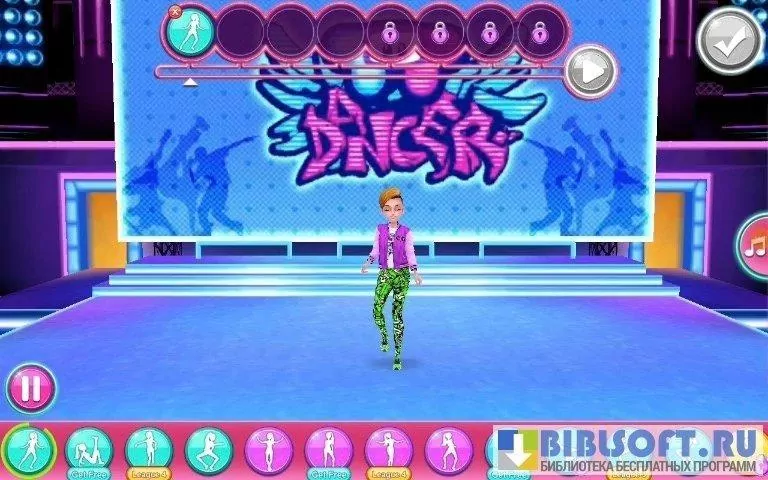 В игре используется принцип всестороннего развития вашего персонажа: обязательно нужно учится новым танцевальным элементам, а если возникнет потребность, то прокачайте танцора в тренажерном зале, улучшив его внешность и подтянув физические качества. О внешности – с ней в игре можно очень долго экспериментировать. Это касается одежды и макияжа, наносимого на персонажа перед выступлением.