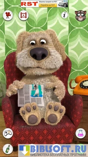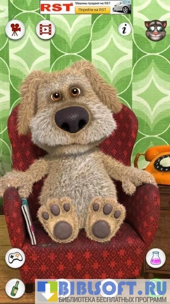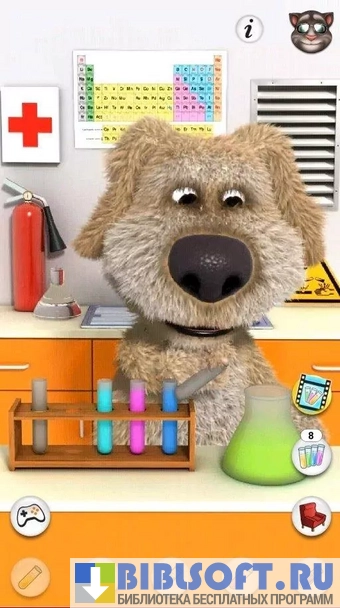 Talking Ben (Говорящий Бен) - интерактивная игра для детей от 3 лет. Главный персонаж - говорящий пес Бен, профессор-химик на пенсии.