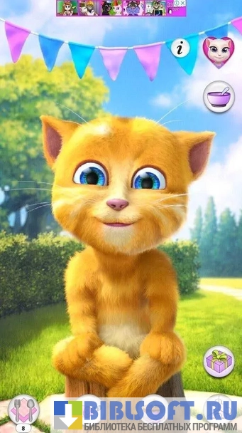 • Джинджера можно кормить, гладить, играть с ним, дуть в дуделку - на все действия игрока кот смешно реагирует.