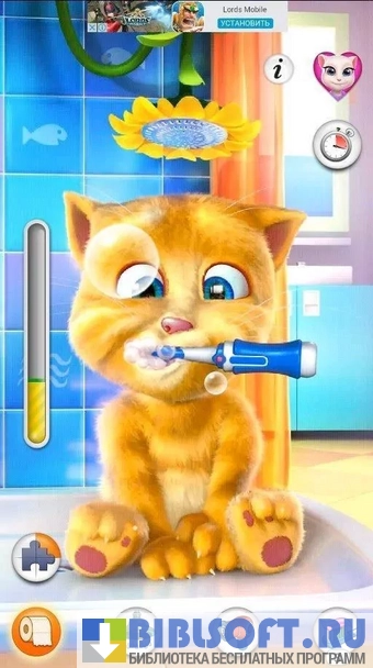 Talking Ginger (Говорящий Джинджер) - забавная интерактивная игра для Android с милым котенком. Игра подходить для ребят дошкольного возраста. Общение с котенком по имени Джинджер не только весело, но и полезно, поскольку вместе с питомцем можно чистить зубы.