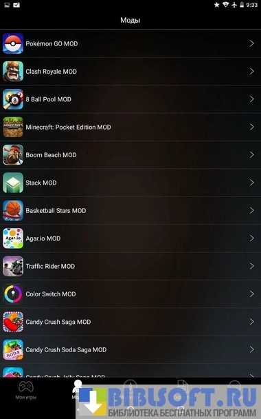 XModGames дает моды к тысячам популярнейших игр, таких как, например, Clash of Clans, Candy Crush Saga, Plants Vs Zombies 2 или Angry Birds Go. Это позволяет игроку собирать гораздо большее количество монет или драгоценных камней, получать неограниченные ходы и число жизней, изменять игровой процесс, делать его еще увлекательнее. Приложение требует рут-прав. После установки программы ее пользователю становится доступным список игр с модами и вся информация о них версия, описание на русском языке, дата обновления и т.д.
