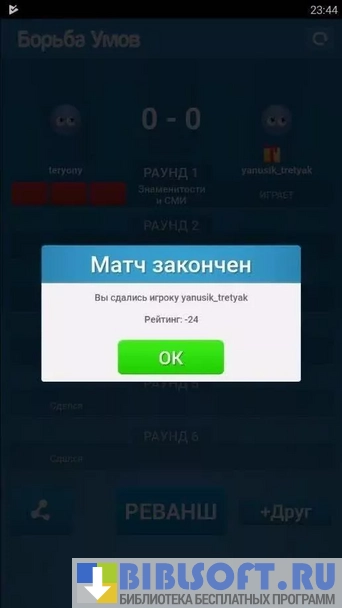 Борьба Умов – это увлекательная Android игра для тех, кто желает помериться силами в самых различных областях знаний: наука, культура, спорт, ТВ и т.д.