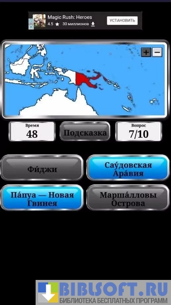 World Geography (География мира) – занимательная викторина для Android, которая поможет ближе узнать географию. Вопросы в данной игре затрагивают не только местоположение стран, а так же их религию, валюту и даже среднюю продолжительность жизни граждан.