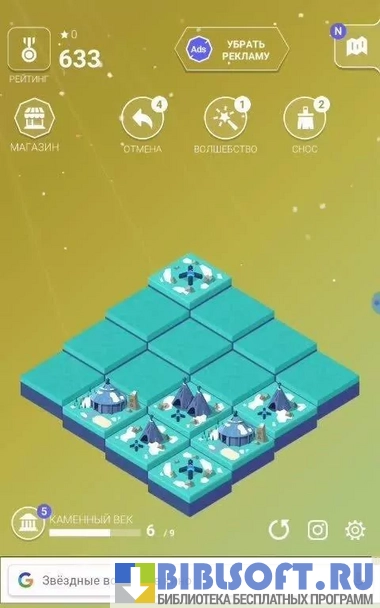 - помощь в виде отмены последнего хода, повышения уровня одного блока или сноса построек, мешающих правильному развитию;