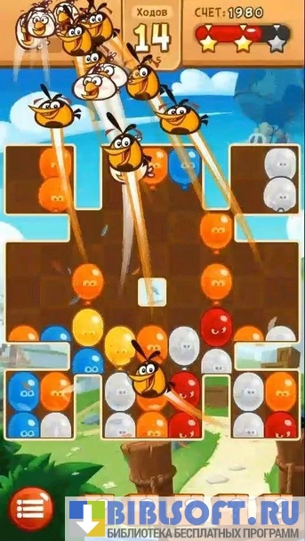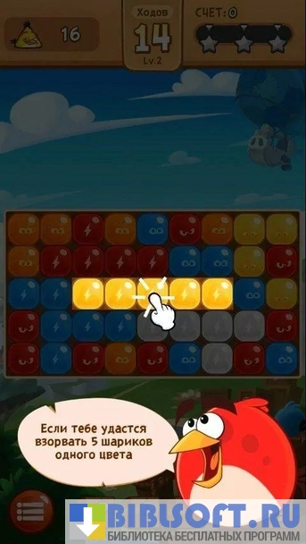 - Попробуйте «освободить» максимальное количество птиц за один раз – для этого объединяйте шары так, чтобы новые, оказавшиеся на их месте были одного цвета;