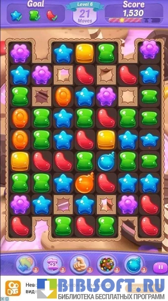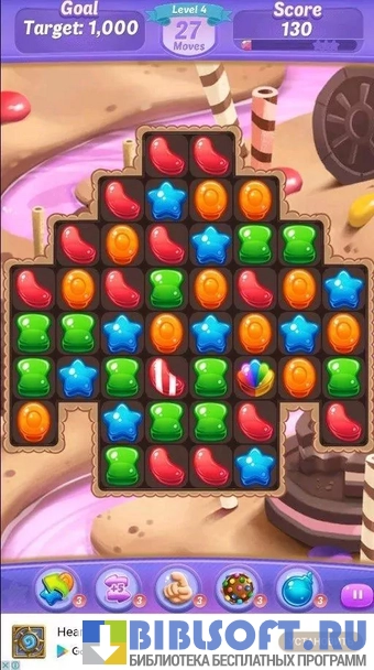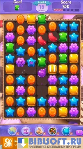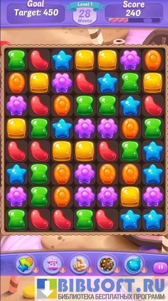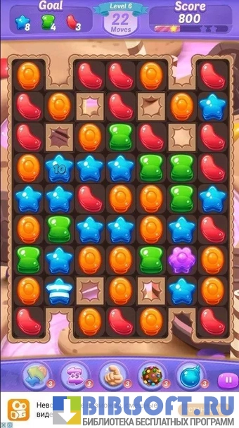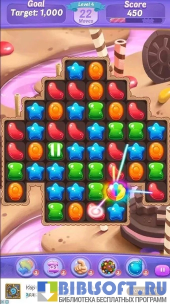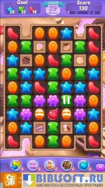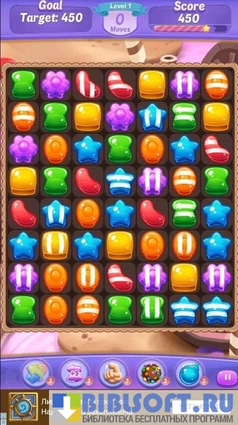 - выставьте 3 одинаковых конфеты в ряд, чтобы вы звать взрыв и очистить участок доски;
