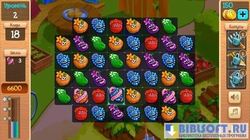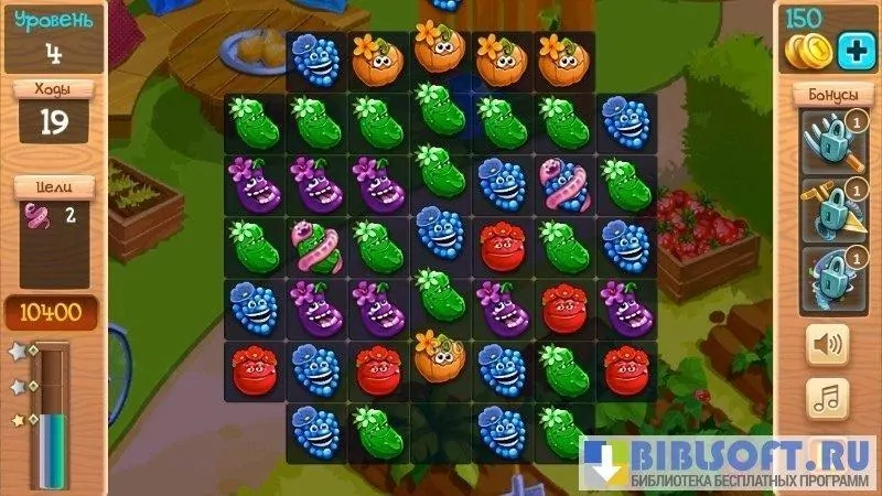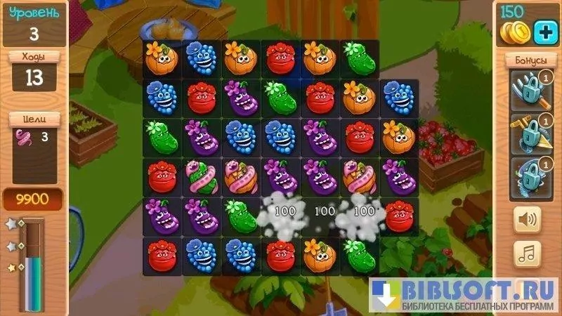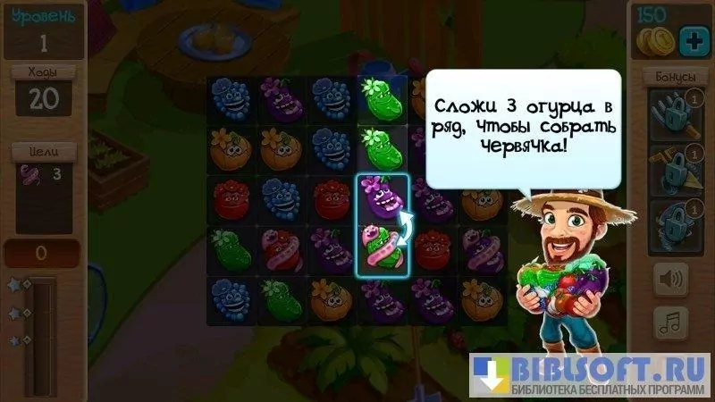 Для сбора урожая необходимо складывать овощи и фрукты в ряд, минимум по три одинаковых элемента. Ситуация осложняется еще и тем, что во время уборочной компании нужно заранее готовиться к посевной – выкорчевывая сорняки, а также убивая паразитов, насекомых и грызунов.