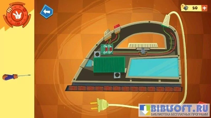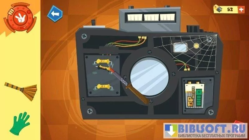 4 шаг — замена. После детали чинятся или заменяются на новые(прикрутить болты, припаять резистор или конденсатор). За выполненные задания даются 2 батарейки. Так же их можно найти в комнатах под мебелью. За каждую подсказку - минус 2 батарейки.