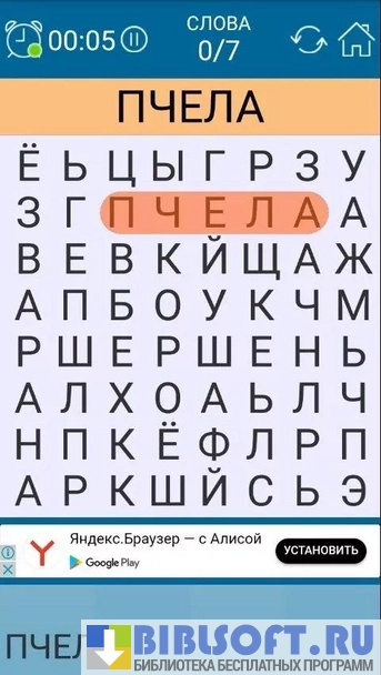 Поиск Слова – увлекательная головоломка для Androidq, в которой на квадратном поле необходимо находить спрятанные слова. В игре имеются уровни разной сложности, начиная от легкого квадрата 5х5 и заканчивая экстремальным полем размером 20х20.