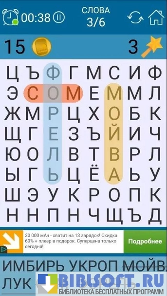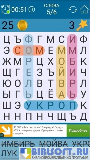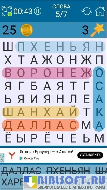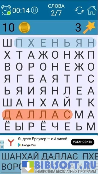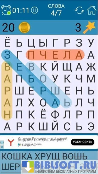 В приложении можно соревноваться с другими игроками, открыв больше слов за определенное количество времени. При выходе из игры пройденный процесс сохраняется, ведь в ней реализовано автосохранение, а функция увеличения шрифта позволяет играть даже на девайсах с небольшим экраном.
