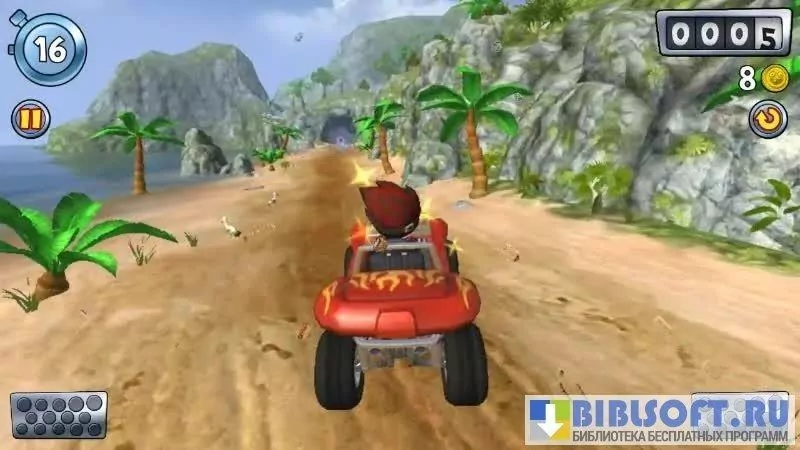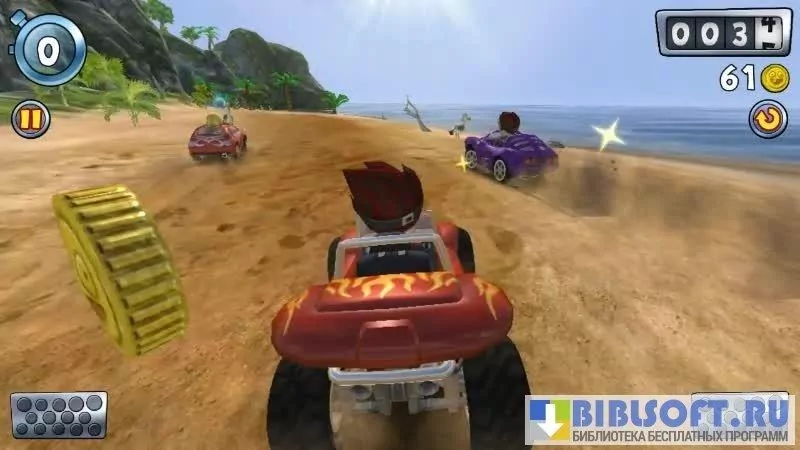 Beach Buggy Blitz - детский гоночный симулятор для Android. Гонка проходит по береговой линии пляжа. Тип гоночного режима – гонка на время. На трассе встречаются монеты, которые нужно собирать и другие гонщики, которых нужно обгонять или таранить. Дорогу могут заграждать разные преграды, в виде костров, домов, бочек из-под топлива. Встречается разнообразная живность типа птиц и крабов.