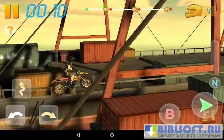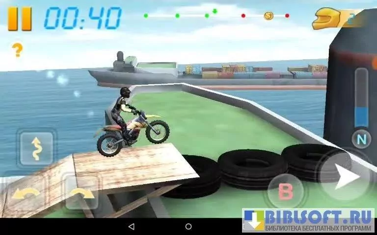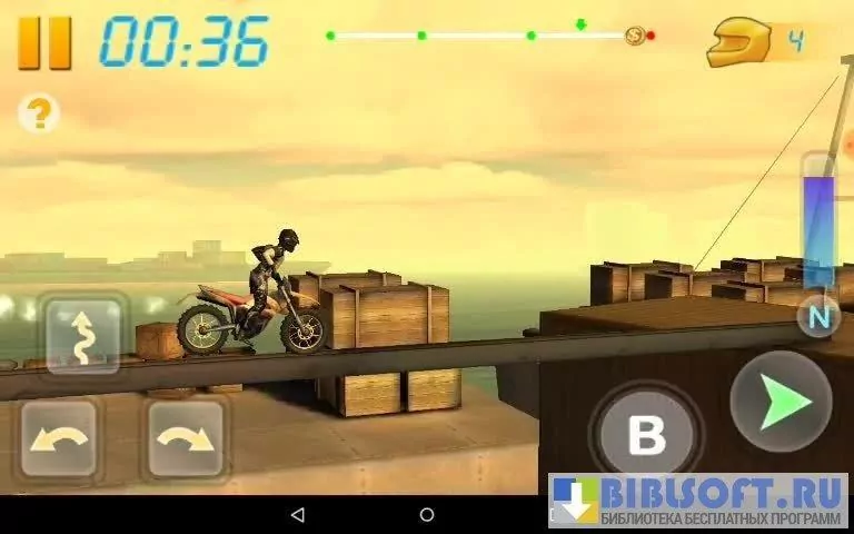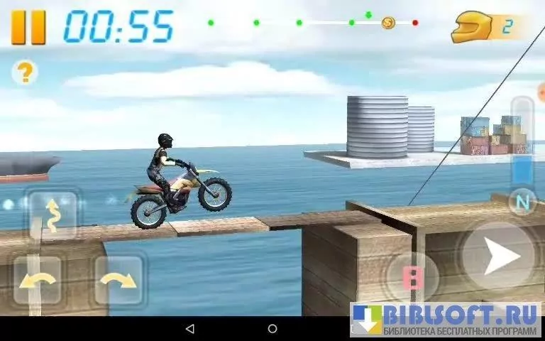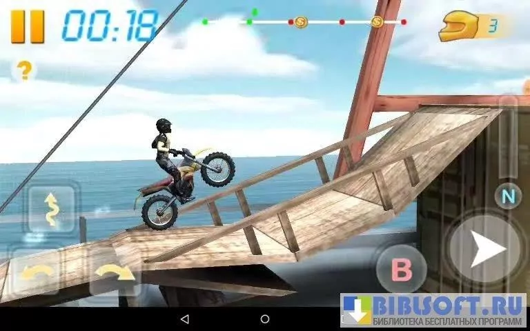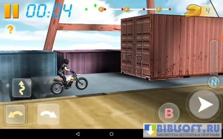 Игра отличается разнообразием локаций – вам предстоит попробовать свои силы на стройке, в пустыне, на песчаном пляже, в заснеженных горах, а также во многих других местах. Управление игрой осуществляется с помощью четырех сенсорных клавиш. Клавиши справа отвечают за тормоз и газ, а левые – управляют наклоном мотоциклиста. От игрока требуется хорошая координация, так как при малейшем неосторожном движении мотоциклист упадет. Нужно помнить и о том, что бензин может заканчиваться, поэтому бак необходимо своевременно пополнять.