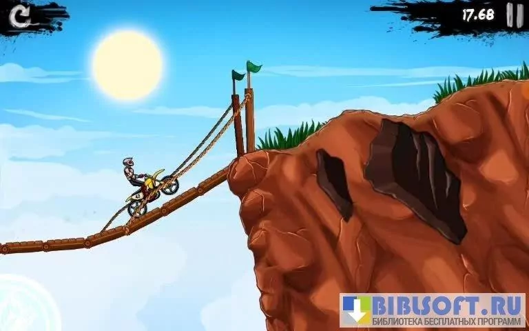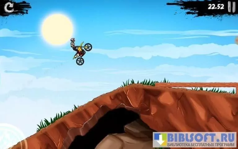 Bike Rivals – экстремальные гонки для Android на мотоцикле по сумасшедшим трассам с препятствиями. Двухмерная графика выполнена в мультяшном стиле. Хорошо прорисован гонщик, мотоцикл и ландшафт трассы. Управление простое – газ, тормоз и наклоны мотоцикла вперед-назад. Всего 4 нажатия по экрану дают возможность выполнять разнообразные прыжки и трюки на мотоцикле.
