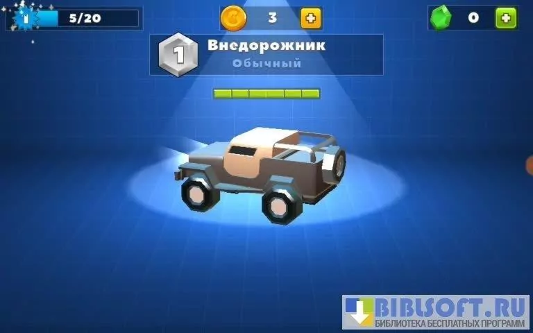 Всё оружие в игре можно улучшать, а машины совершенствовать. Новые авто можно купить или выиграть в автоматах. Монеты для покупки новых авто выдаются в награду за участие в битвах. Собирайте короны, разрушайте машины противников, получайте щедрые награды, покупайте улучшенные автомобили, занимайте призовые места.