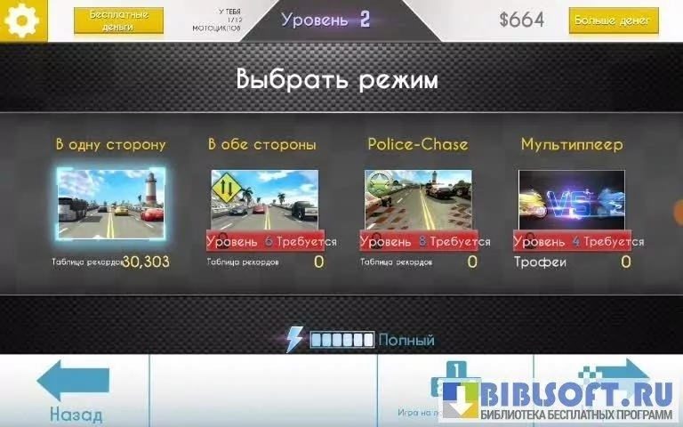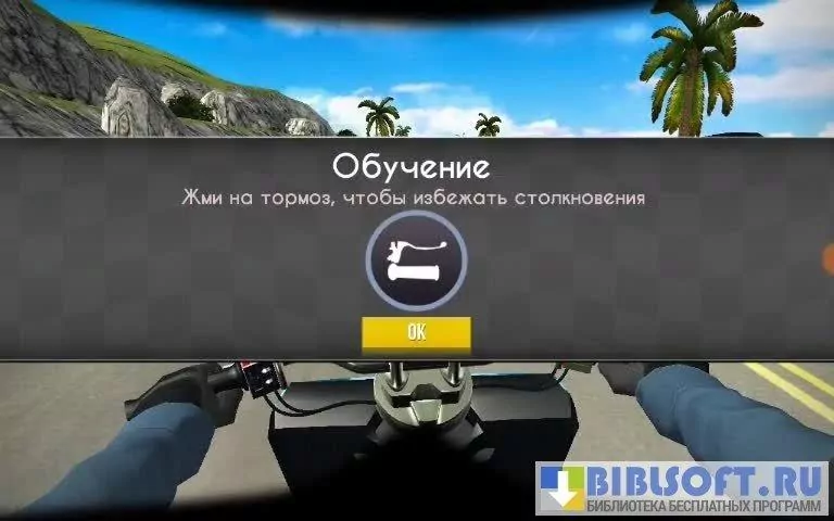 Режим свободной езды предполагает гонки без каких-либо ограничений и правил. В меню можно выбрать систему управления. Управлять мотоциклом можно с помощью акселерометра или виртуальных клавиш. Второй вариант гораздо удобнее. В левом нижнем углу экрана находятся клавиши поворотов направо и налево – мотоцикл маневрирует плавно. В правом нижнем углу – клавиши тормоза и газа в виде стрелок. Мотоцикл разгоняется самопроизвольно, пользователь может притормозить или наслаждаться скоростью.