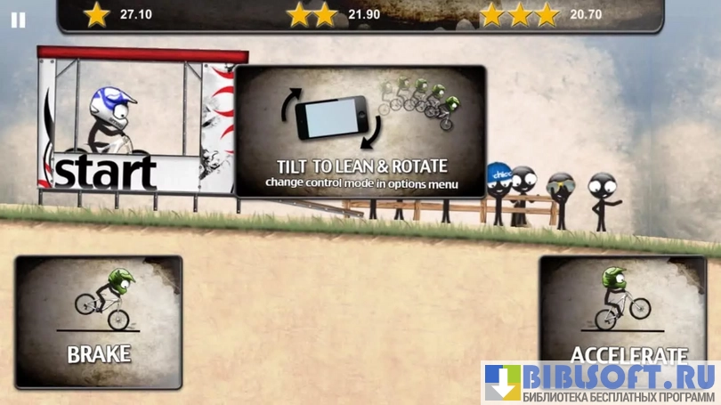Для управления велосипедистом используется акселерометр и сенсорное управление одновременно. Требуется немного потренироваться, чтобы привыкнуть к нему. Графика и интерфейс сделаны красочно, но без лишних деталей.