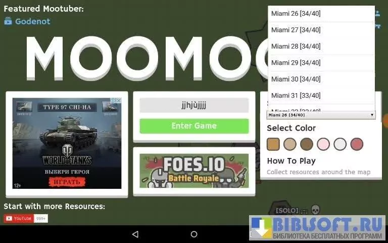 MooMoo.io – многопользовательская ролевая IO игра для Android. В игре можно тихонько заготавливать плоды, собирать камни, рубить деревья или добывать золото. Но поскольку игра многопользовательская, а игровая карта имеет свои границы, в определенный момент наступает ситуация, когда игроков становится больше, чем свободных ресурсов и действие перестает носить мирный характер - начинаются битвы за территории и ресурсы.