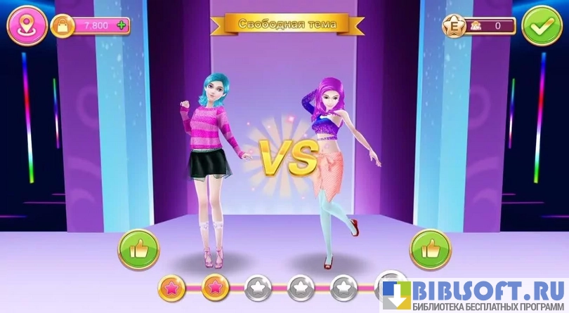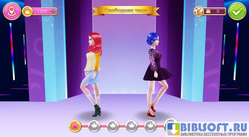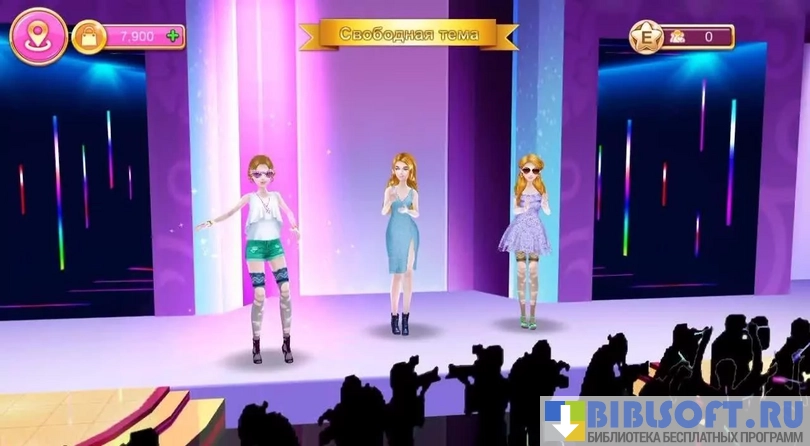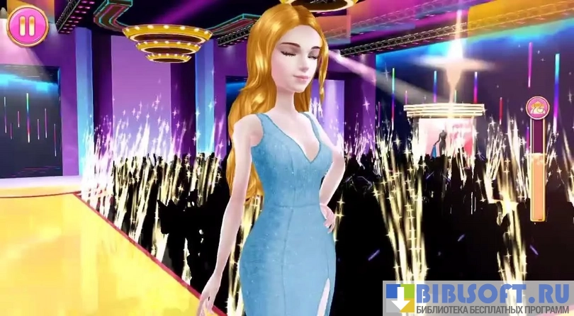 В нем выбираем тип мероприятия - VIP, свободная тема, балет или вручение музыкальных наград. Имея макияж и прическу, шансов на победу будет больше. Далее выбираем спецэффекты, которые будут тебя сопровождать. Проходя по подиуму, надо собирать лайки в синих кружочках и не трогать красные, а то твоя героиня будет спотыкаться!