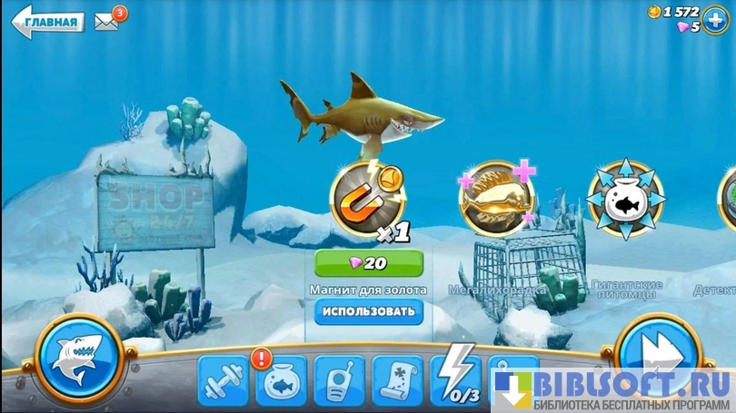 - множество гаджетов и аксессуаров для улучшения своей акулы;