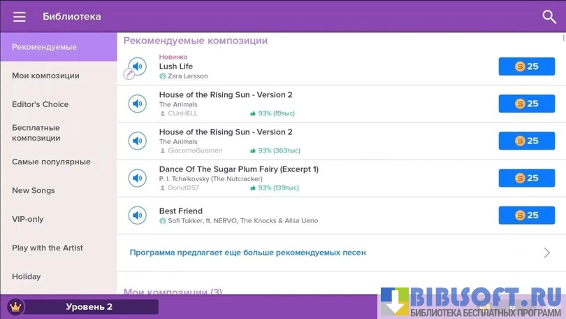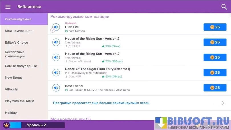 - Выбирайте одну из доступных для освоения музыкальных композиций;