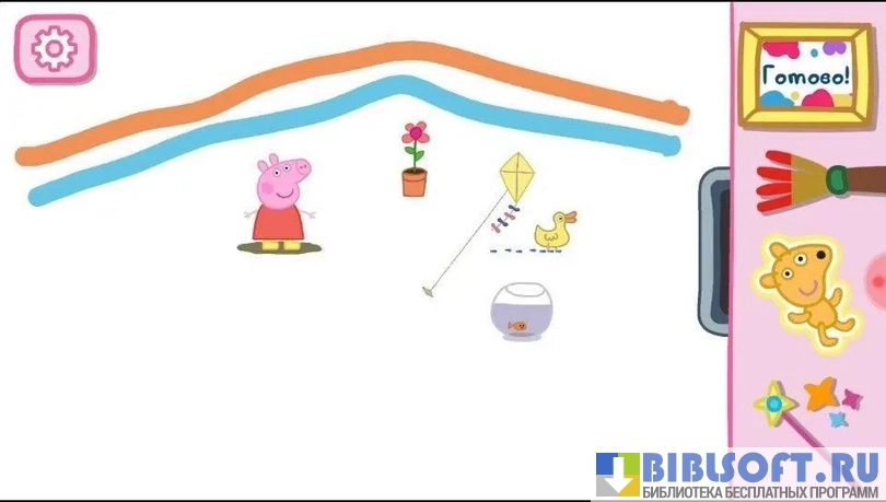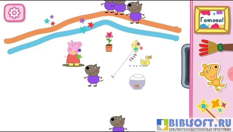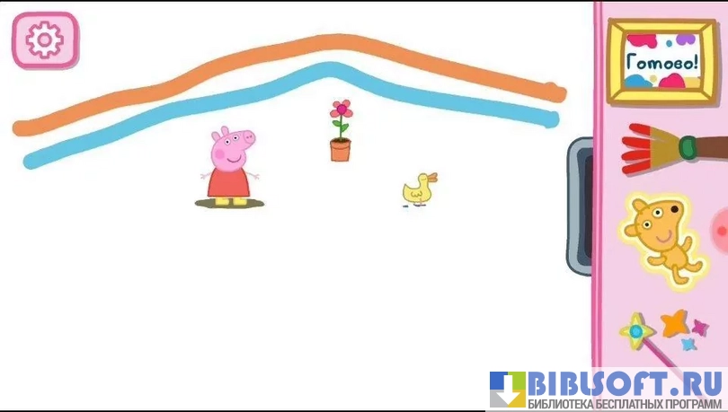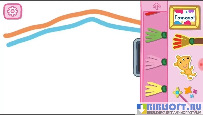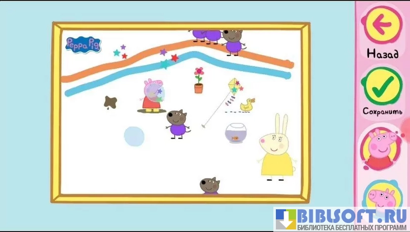 - Есть возможность менять фон, выбирая 1 из 3 рисунков с Пеппой.