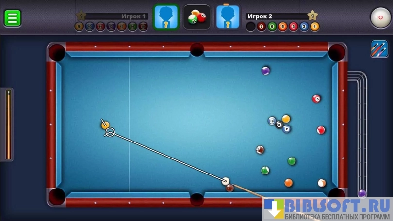 8 Ball Pool - симулятор настольной игры в бильярд для Android. Игра выполнена в двухмерной плоскости, объемные только шары. Игроки за столом не отображаются, видны только стол и кий. Можно контролировать направление и силу удара, которые отображаются во время подготовки к удару в виде белых линий.