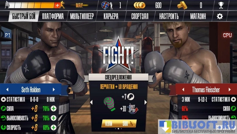 На заработанные деньги можно улучшать своего героя в спортзале: повышать силу удара, выносливость и скорость. В магазине продаются различные предметы и одежда: перчатки, шорты, обувь и другое. Пользователь имеет возможность создать уникального персонажа, ведь в его настройках можно поменять прическу, внешность и даже набить татуировку.