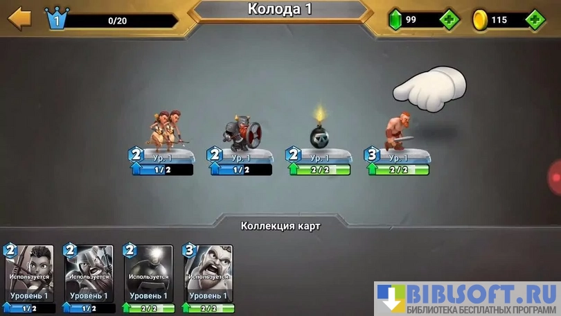 - За победу игрок получает кубки, карты с воинами с особыми свойствами и улучшение позиций в рейтинге.