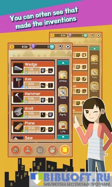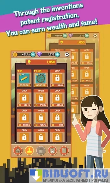 Invention City – двухмерная градостроительная стратегия для Android-устройств с элементами дизайнерского микро-менеджмента. Расчищайте старые кварталы для застройки новыми зданиями. Облагораживайте интерьер в их комнатах и окружающий здания пейзаж, чтобы стать лучшим застройщиком города.