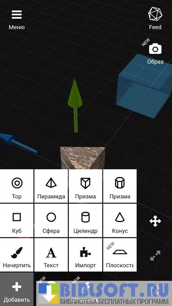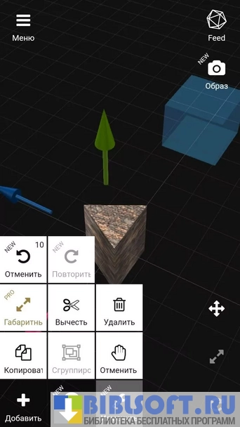3DC.io — функциональное приложение для создания геометрических фигур любых форм и размеров. Создавайте трехмерные модели на основе базовых простейших геометрических форм и воплощайте их в реальности. Для поворота модели в нужном направлении необходимо использовать стрелки, расположенные вокруг. Возможно вращение камеры за счет передвижения пальца по полю. Переместить камеру можно тремя пальцами. Программу можно использовать для создания логотипов, эскизов, дизайна интерьеров, игрушек и т.д.