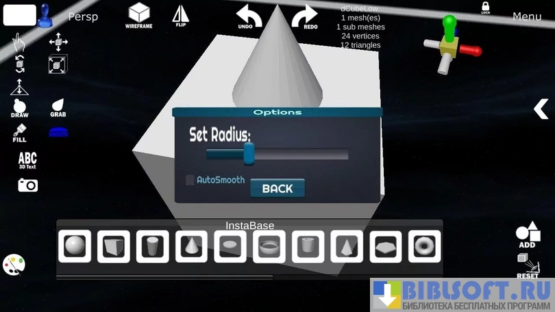 d3D Sculptor - 3D modeling – функциональное приложение для трехмерного моделирования, которое сочетает в себе возможность создания форм, текстур и рисования. Пользователю предлагаются инструменты для выдавливания, растягивания, перемещения, поворота, растяжения объектов в цифровом формате. Производите все возможные манипуляции с виртуальными предметами с такой же легкостью, будто они сделаны из глины. Объекты можно вернуть к исходному состоянию в любой момент. Предусмотрен импорт и экспорт в форматах OBJ и STL. OBJ – универсальный, STL – для печати.